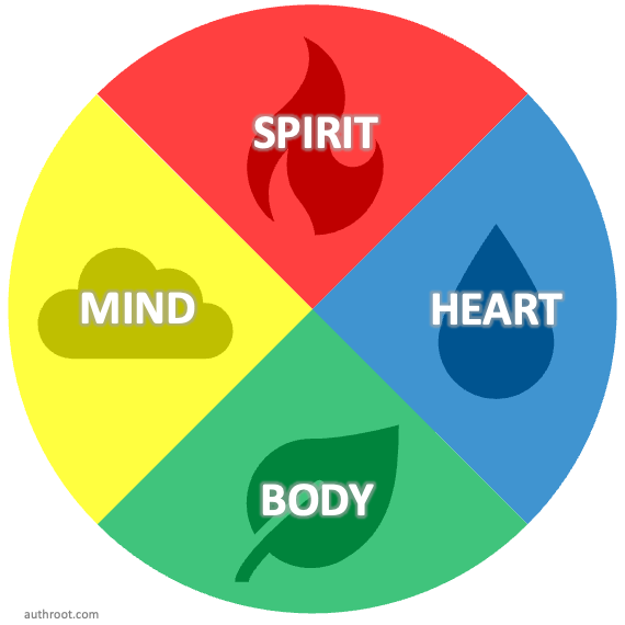 I learned about the shamanic wheel from an Amazonian tradition that looks at the human soul in four dimensions: mind, body, heart, and spirit.